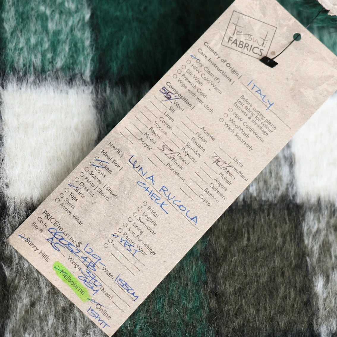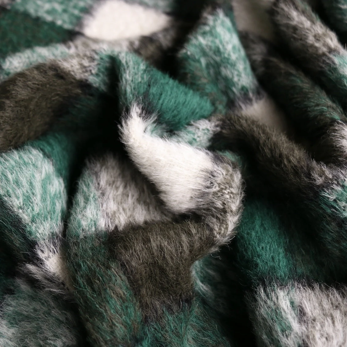 Italian green/olive/winter white checked 55% wool 40% alpaca 5% polyamide plush coating