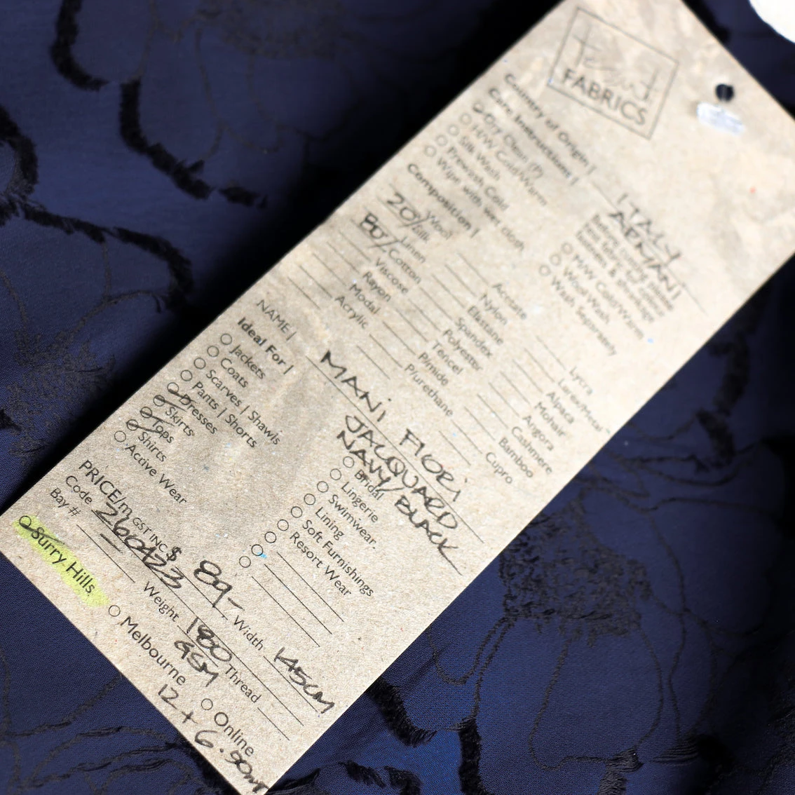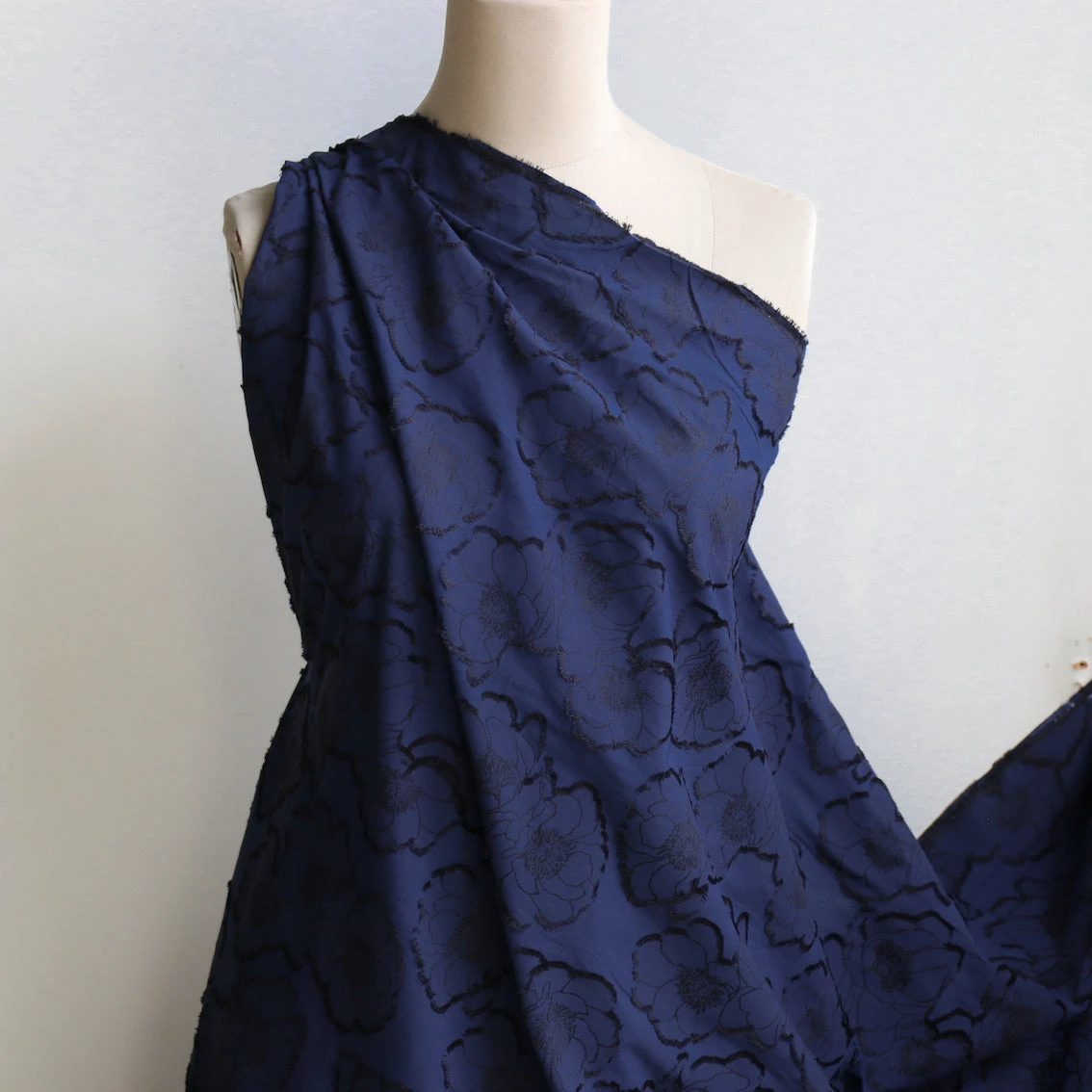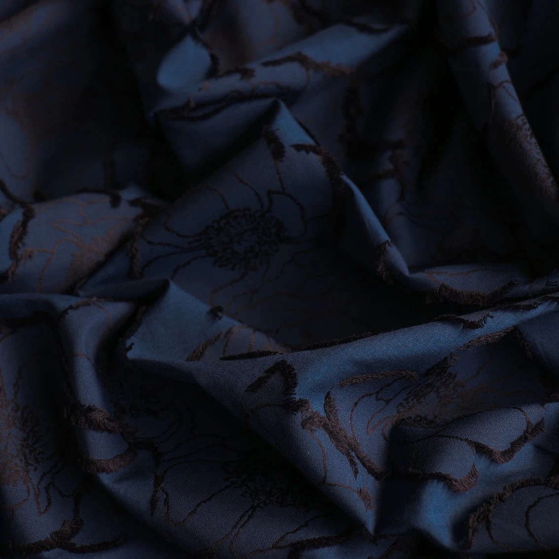 Italian designer navy/black 80% cotton 20% silk floral jacquard