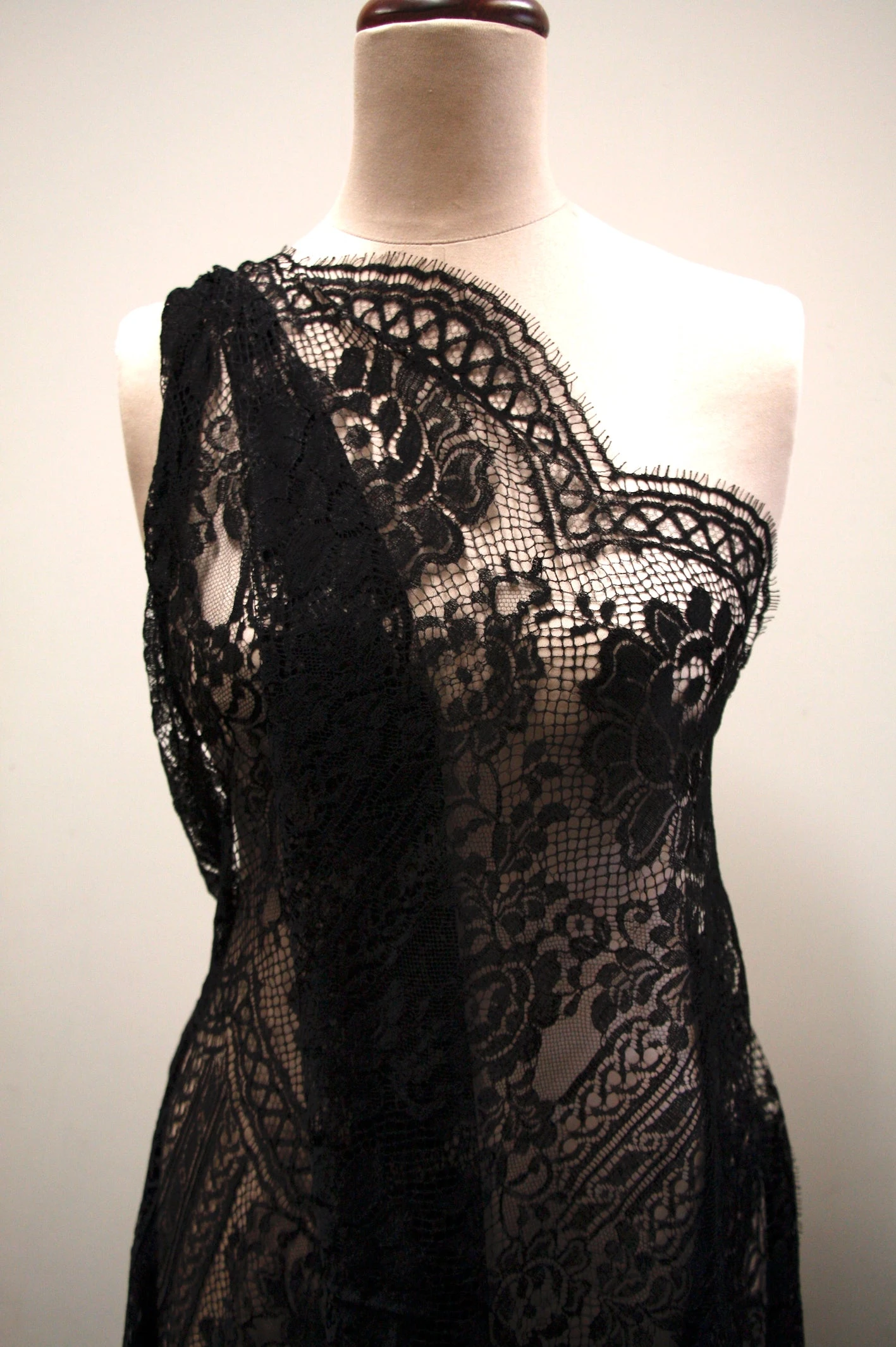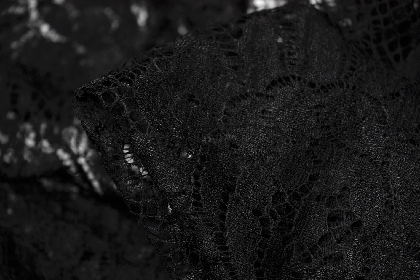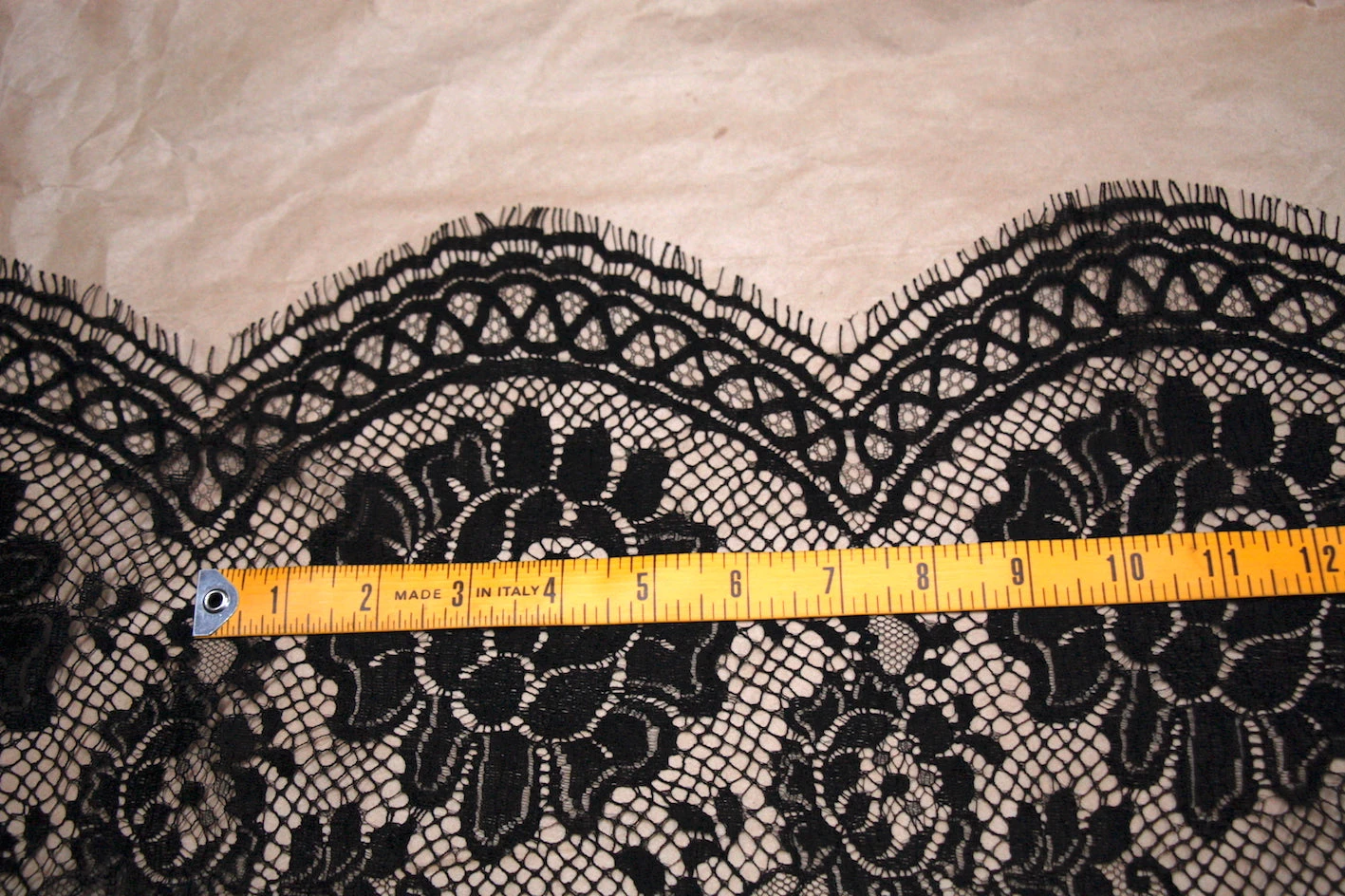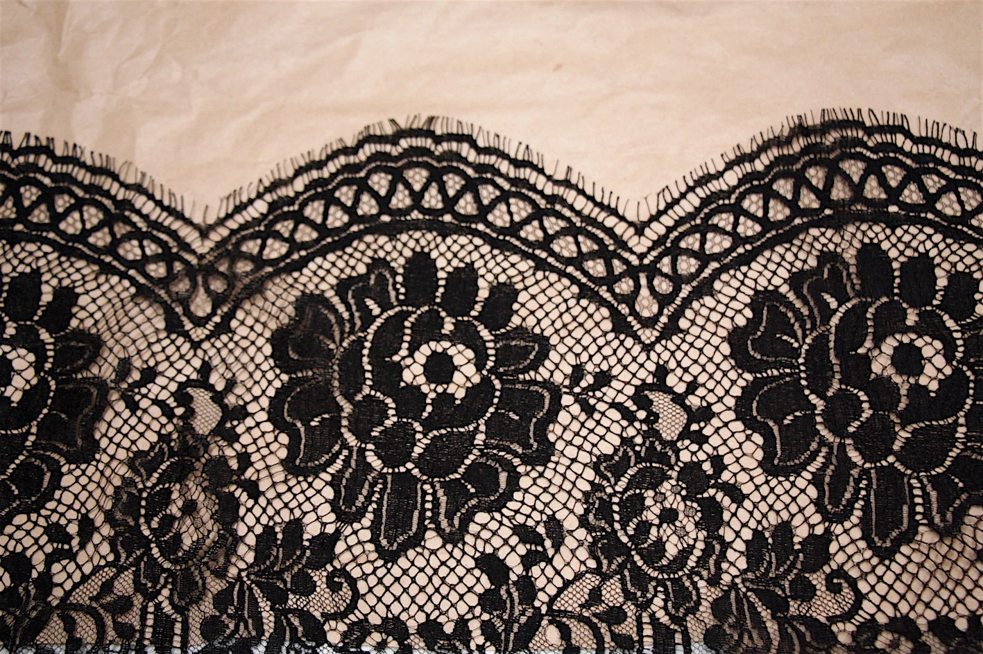 French black 85% Rayon 15% Polyamide chantilly lace. Width:195cm