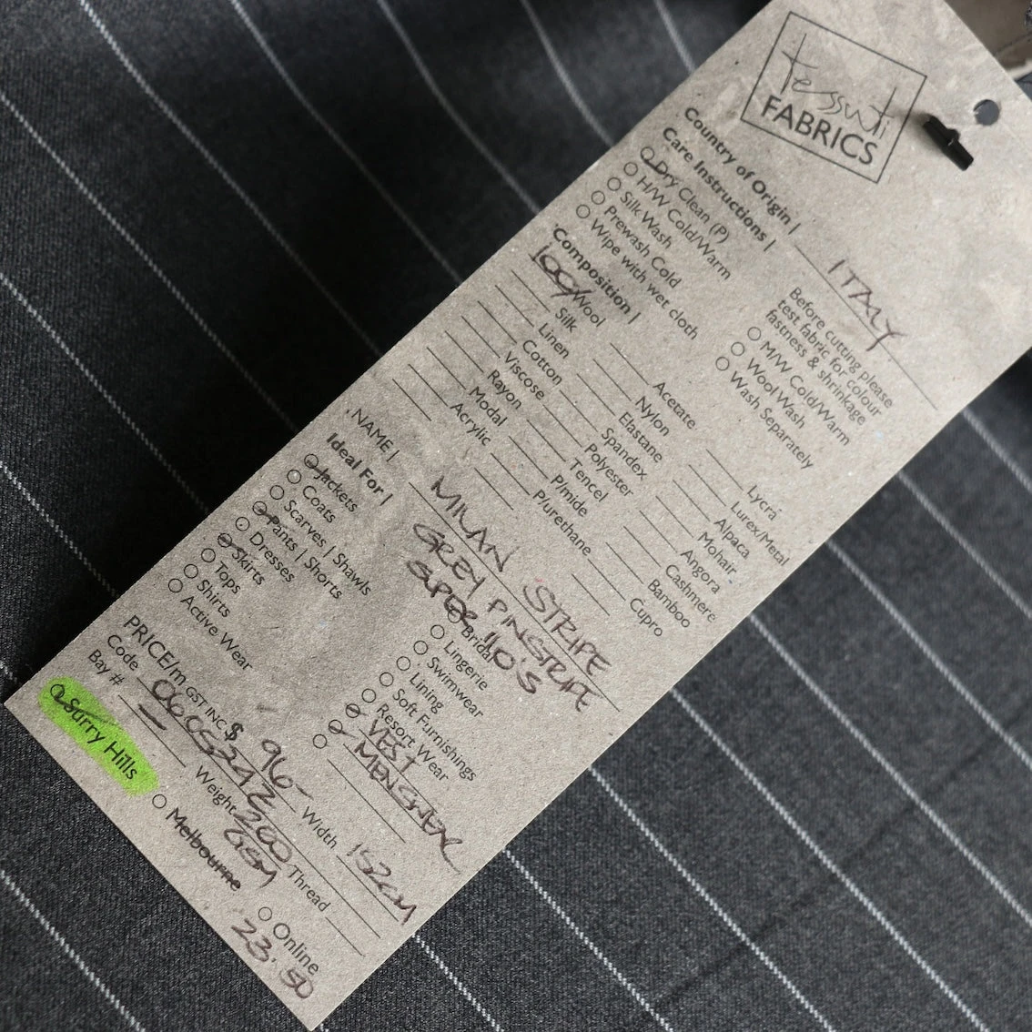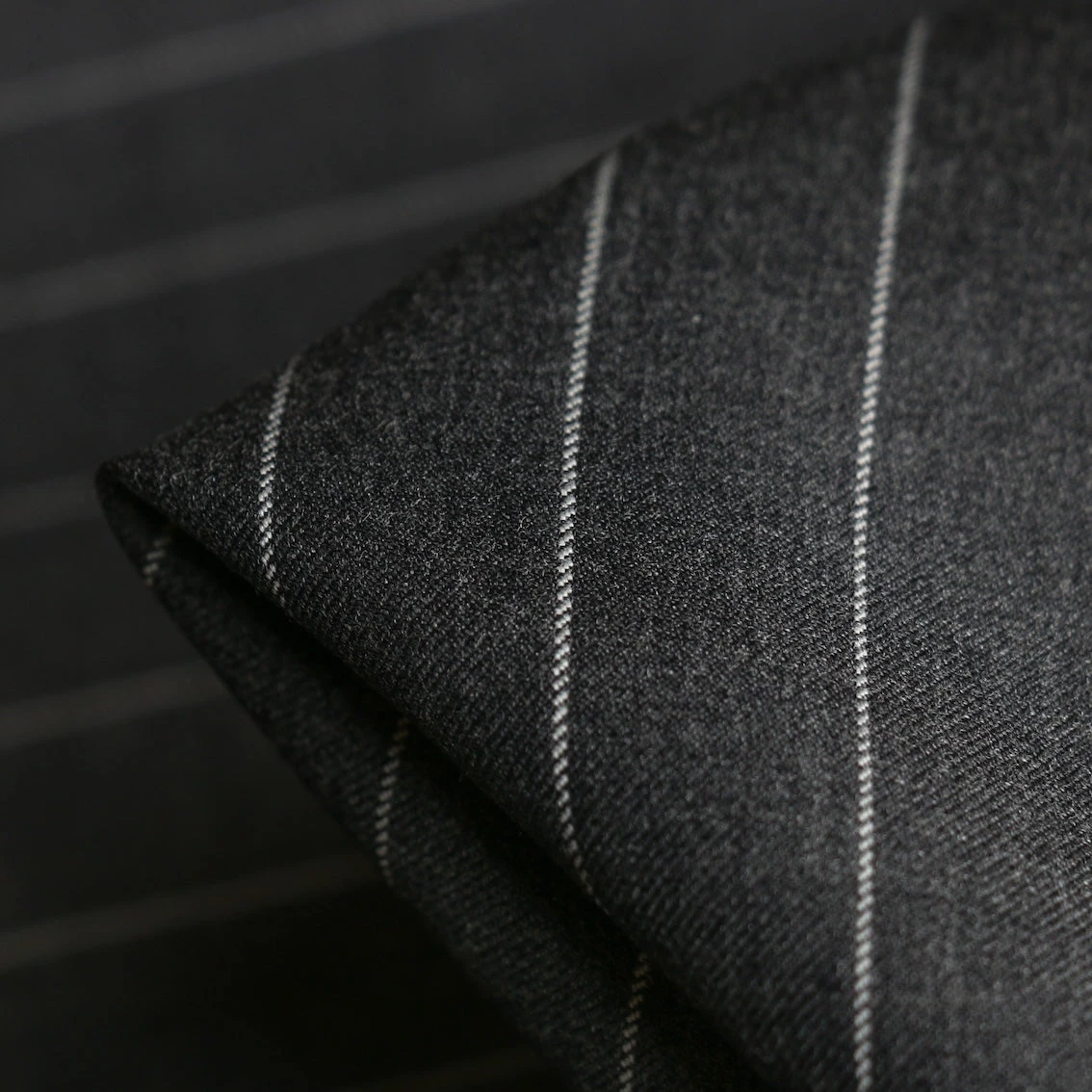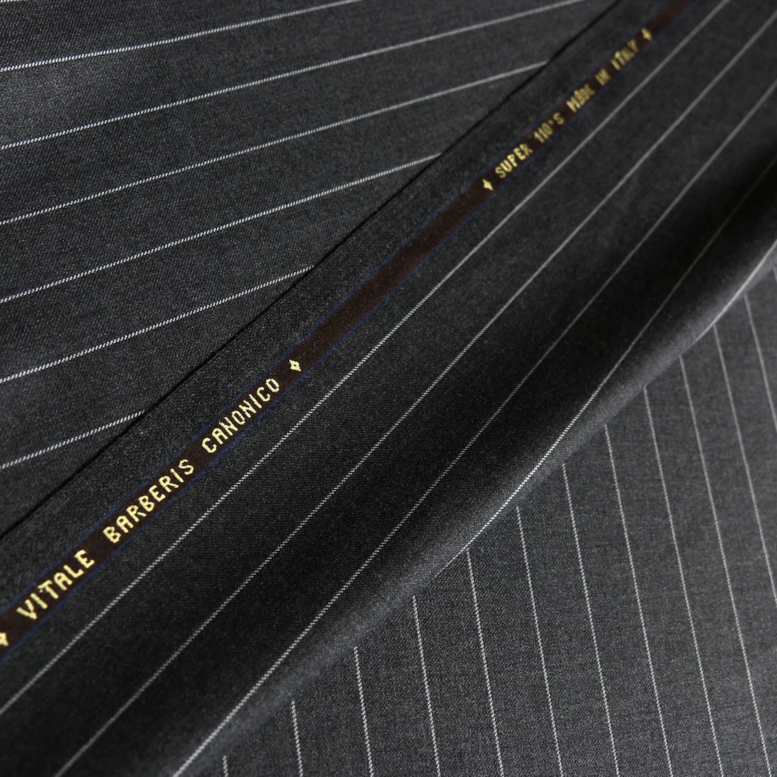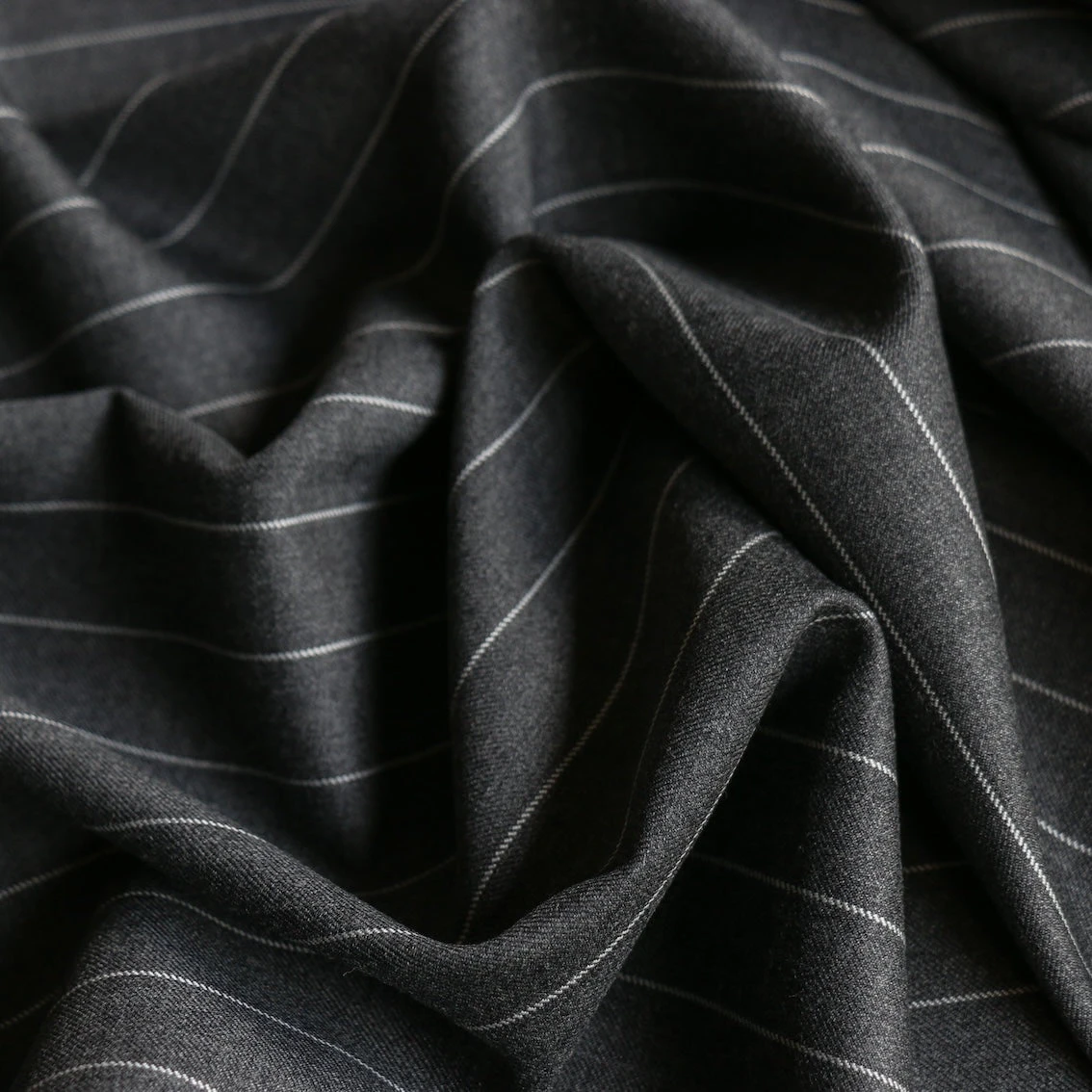 Italian super 110s charcoal/white pinstriped 100% wool suiting