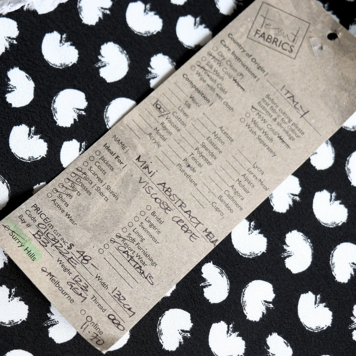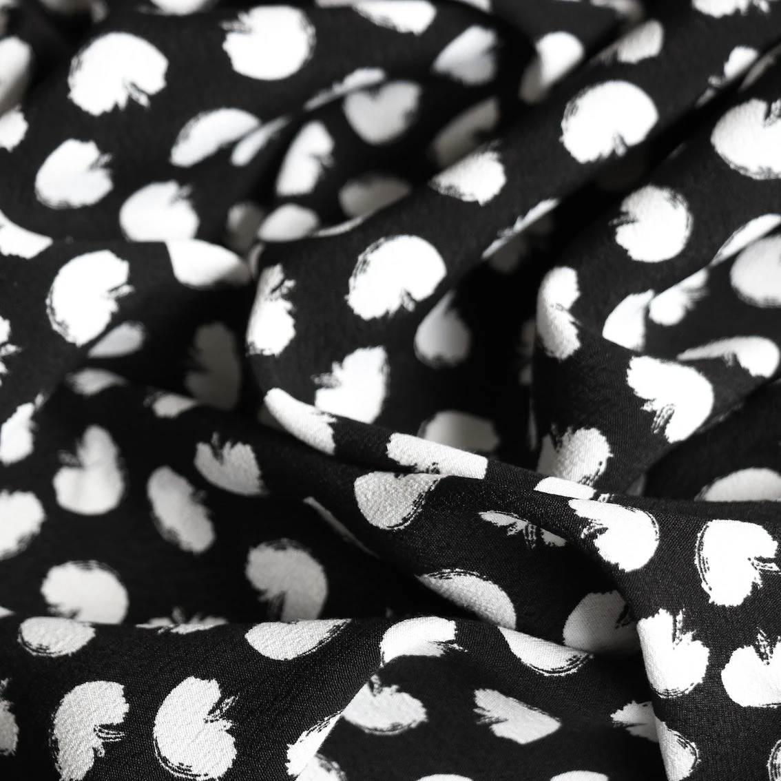 Italian designer black/white mini abstract apple printed 100% viscose crepe