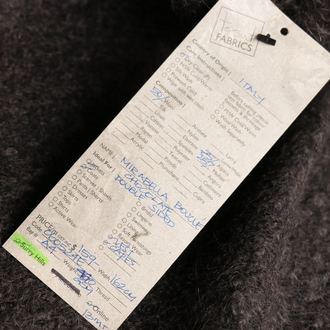 Italian chocolate 50% wool 25% alpaca 25% mohair plush boucle coating