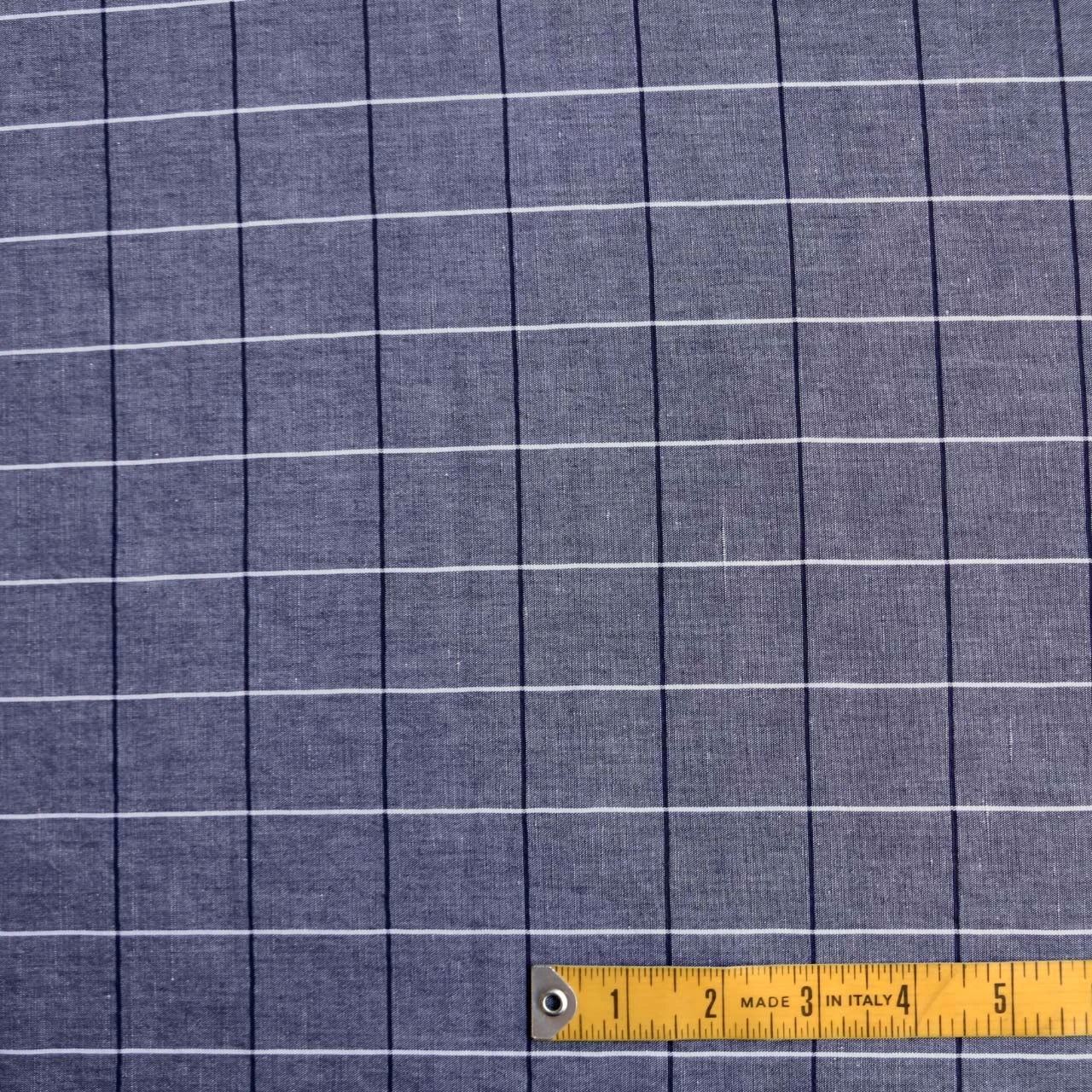 Italian designer yarn-dyed navy/white grid checked 68% viscose 32% hemp