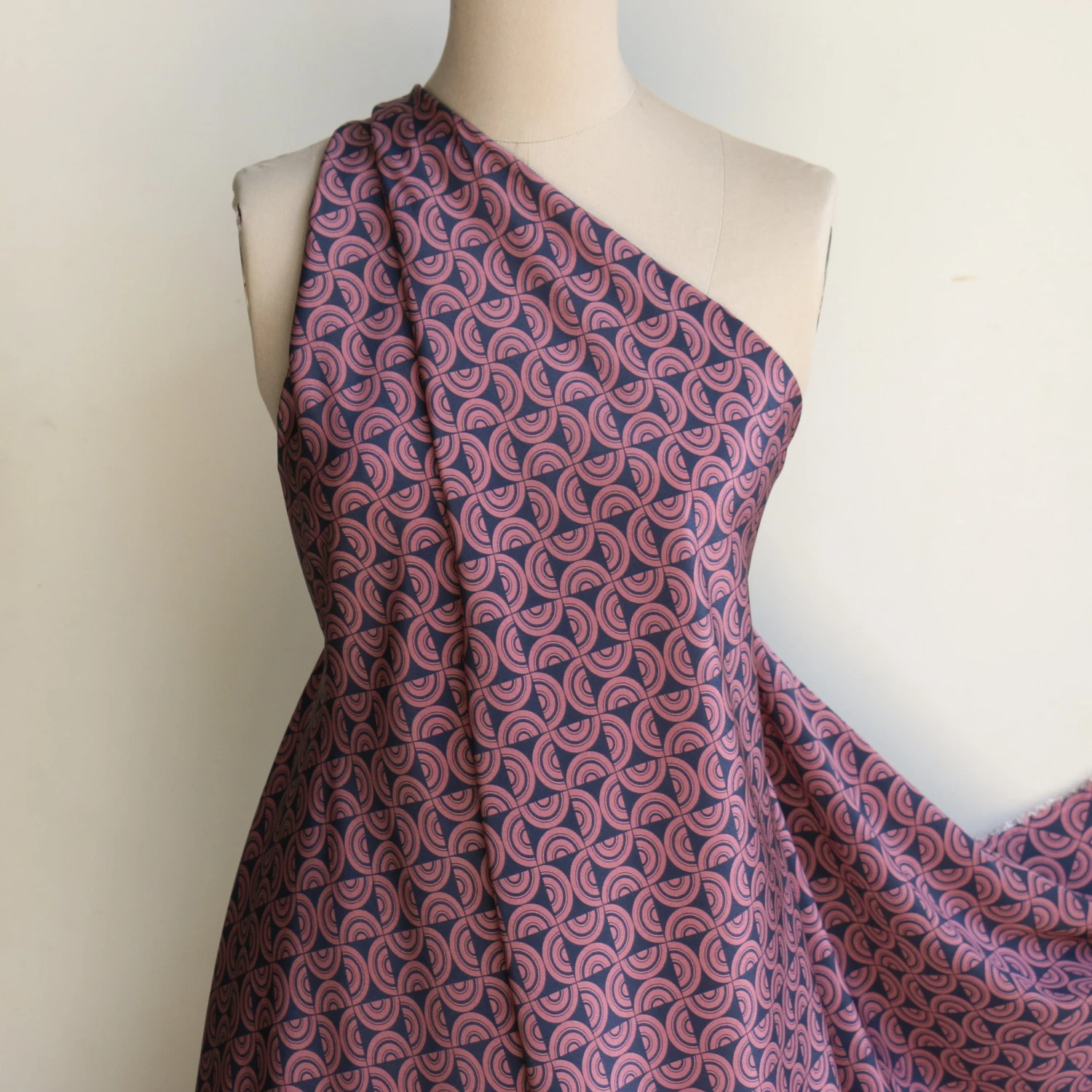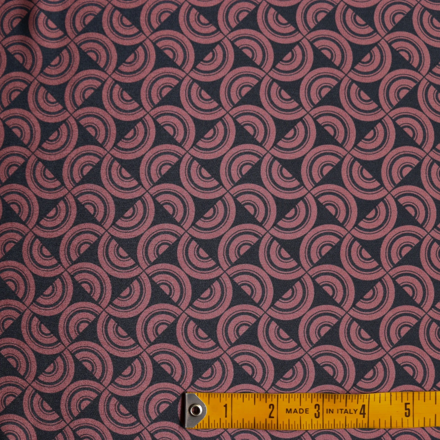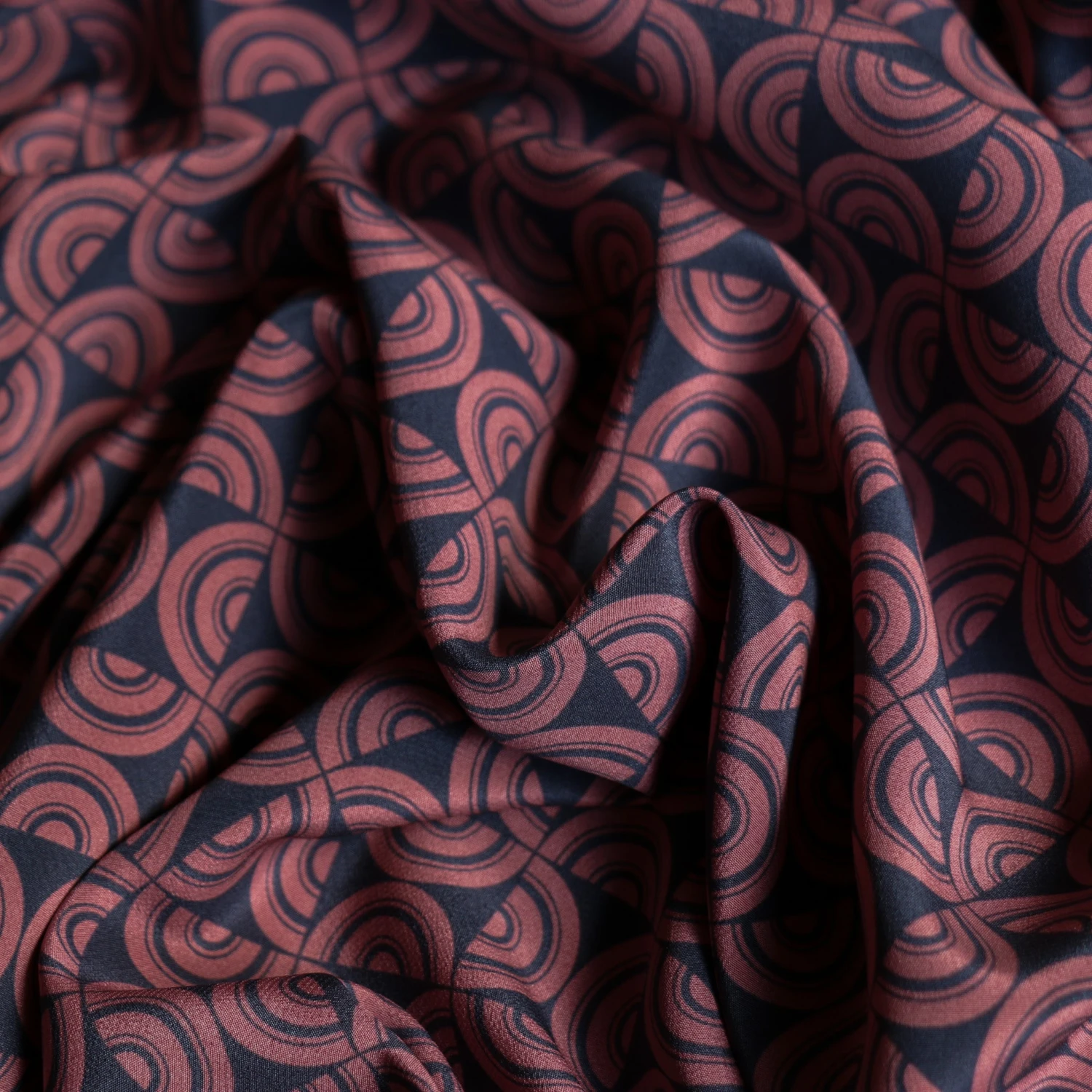Italian designer slate/antique rose printed 100% silk crepe de chine