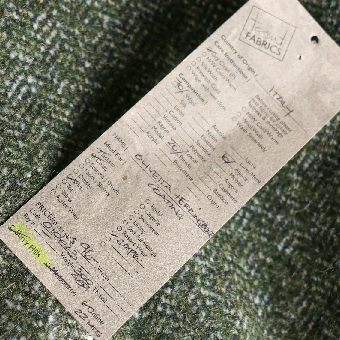 Italian olive/spinach herringbone 70% wool 20% polyamide 10% cashmere