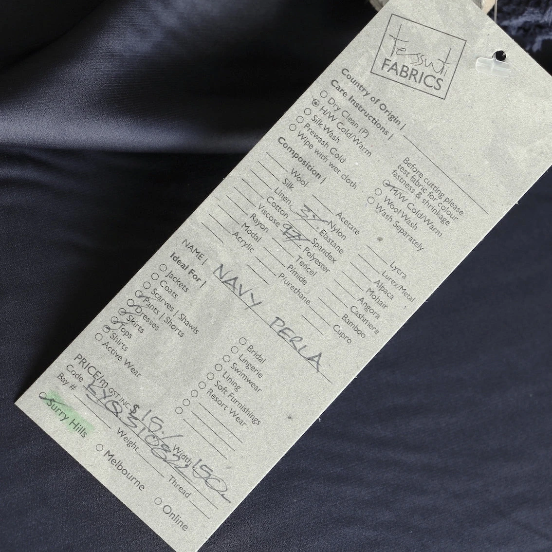 Navy 97% polyester 3% elastane stretch lining
