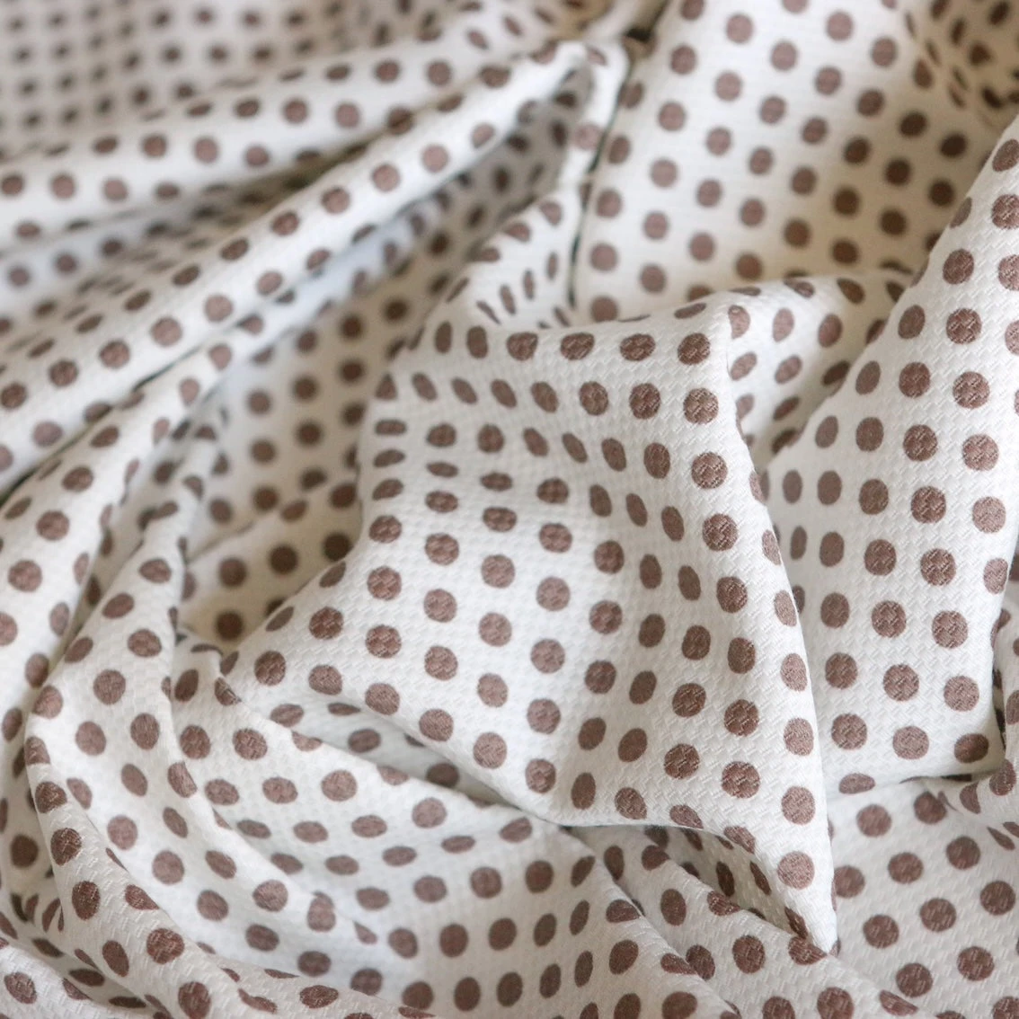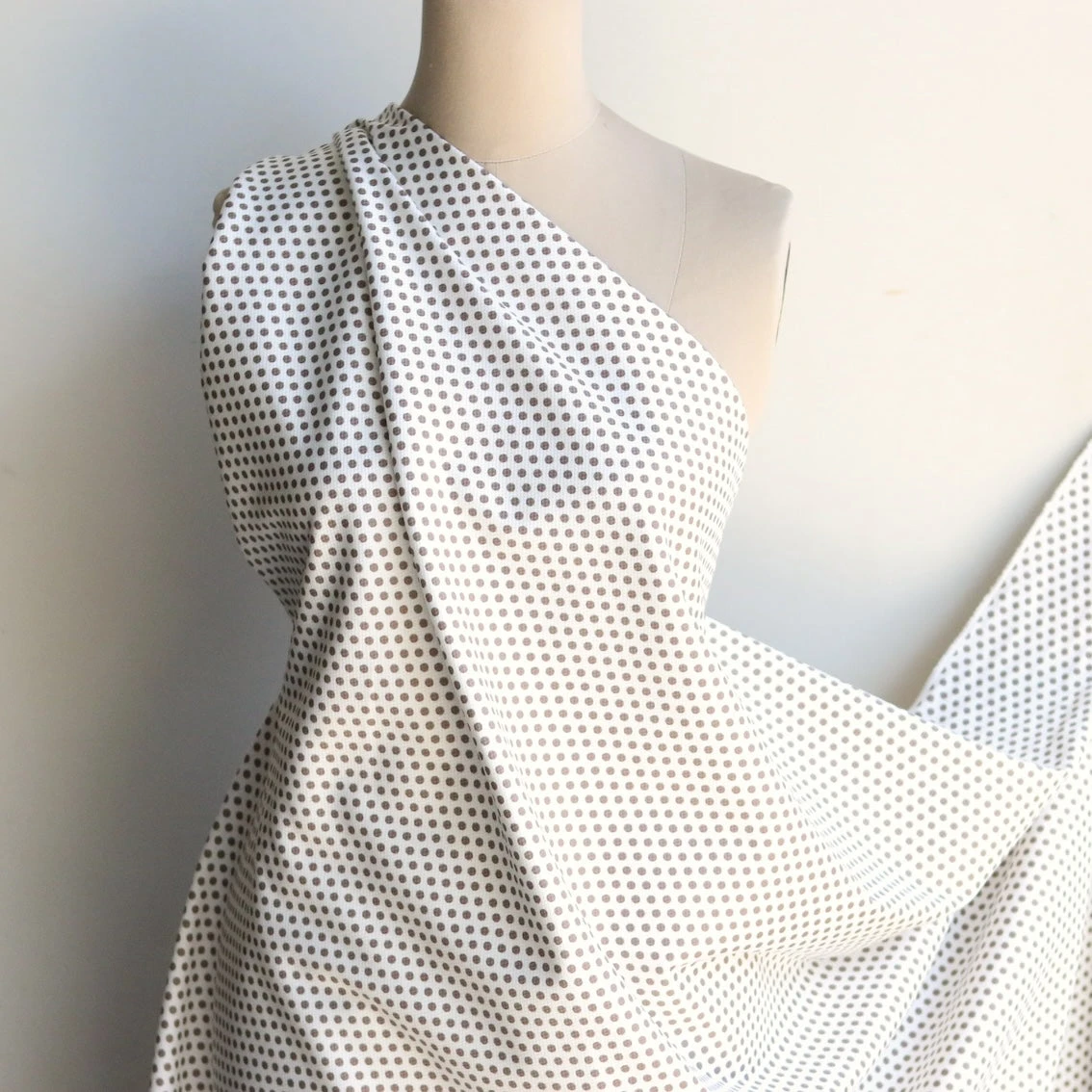 Italian white/taupe spot 98% cotton 2% elastane stretch woven pique