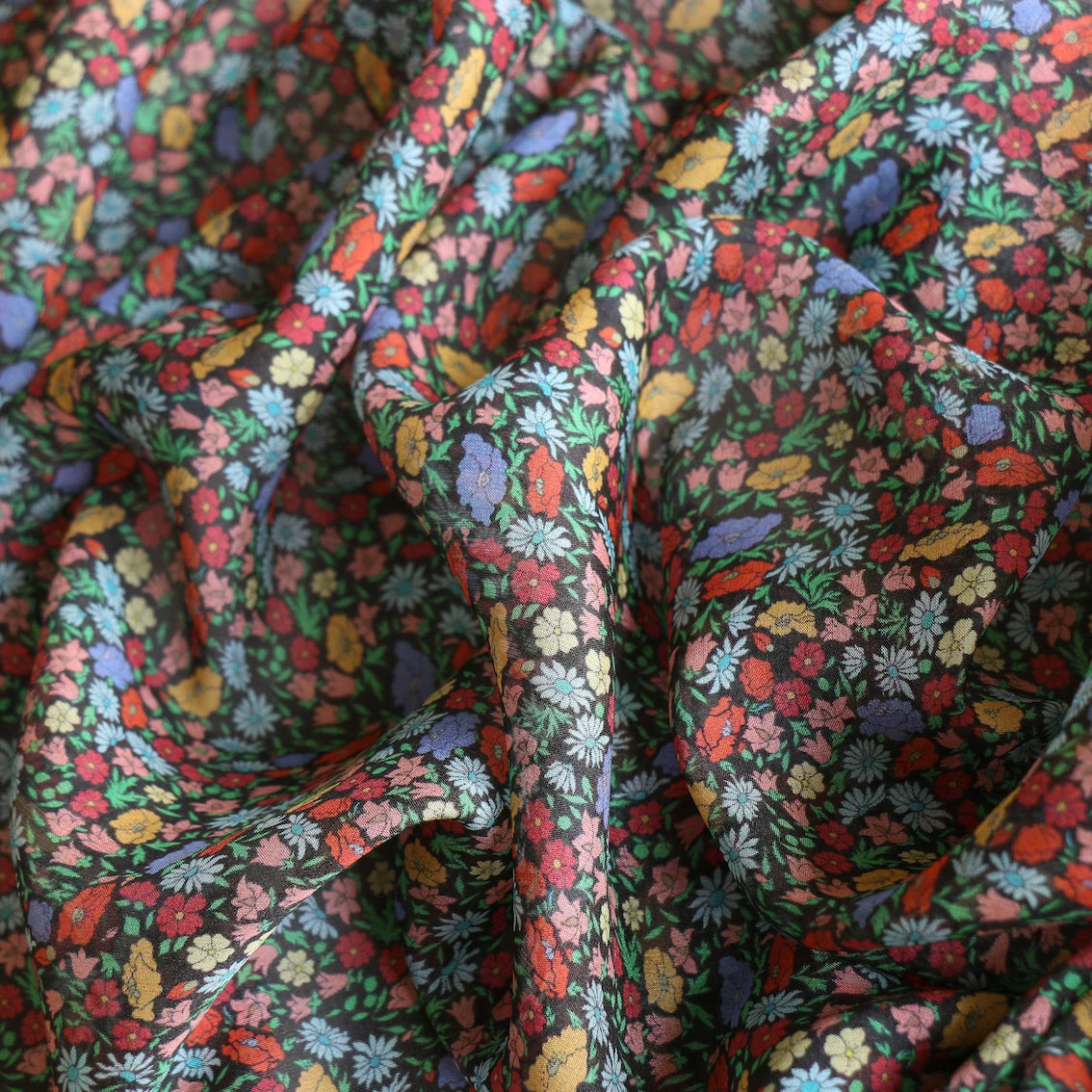 From the Liberty Fabrics Classics collection black/multi poppy floral printed 100% silk chiffon