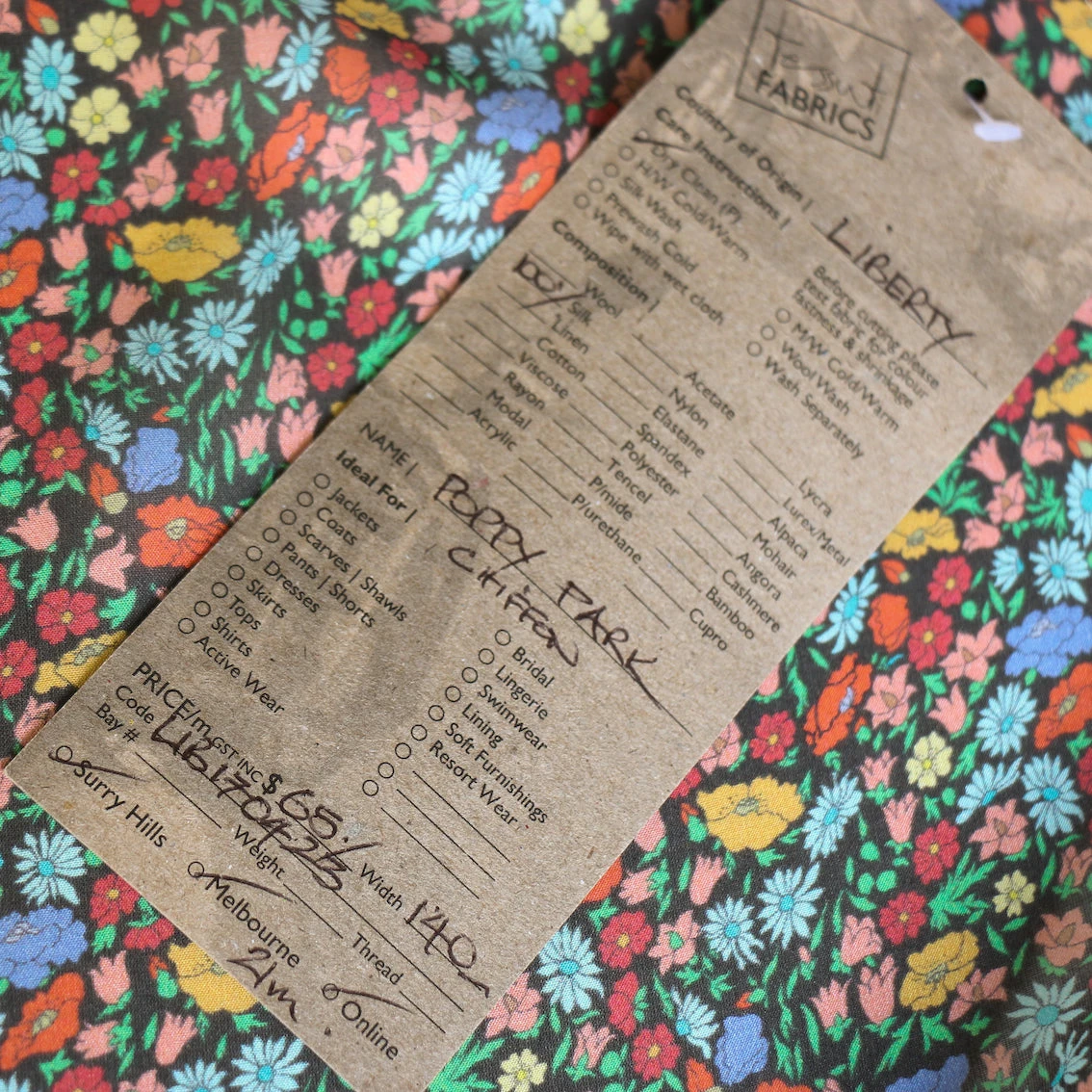 Poppy Park offers a fresh twist on an archival classic – its original incarnation was known as Poppy and Daisy, first appearing in around 1917 when it was wood block printed at Liberty’s Merton printworks. This updated design was created in the Liberty Fabrics studio, featuring an intricate arrangement of small and mid-size florals punctuated by flourishing leaves.