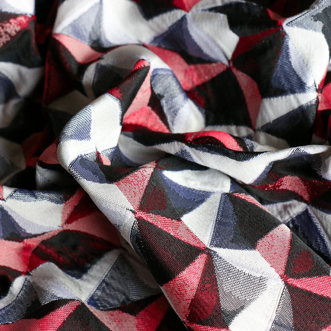 Italian designer red/black polyester/polyamide jacquard
