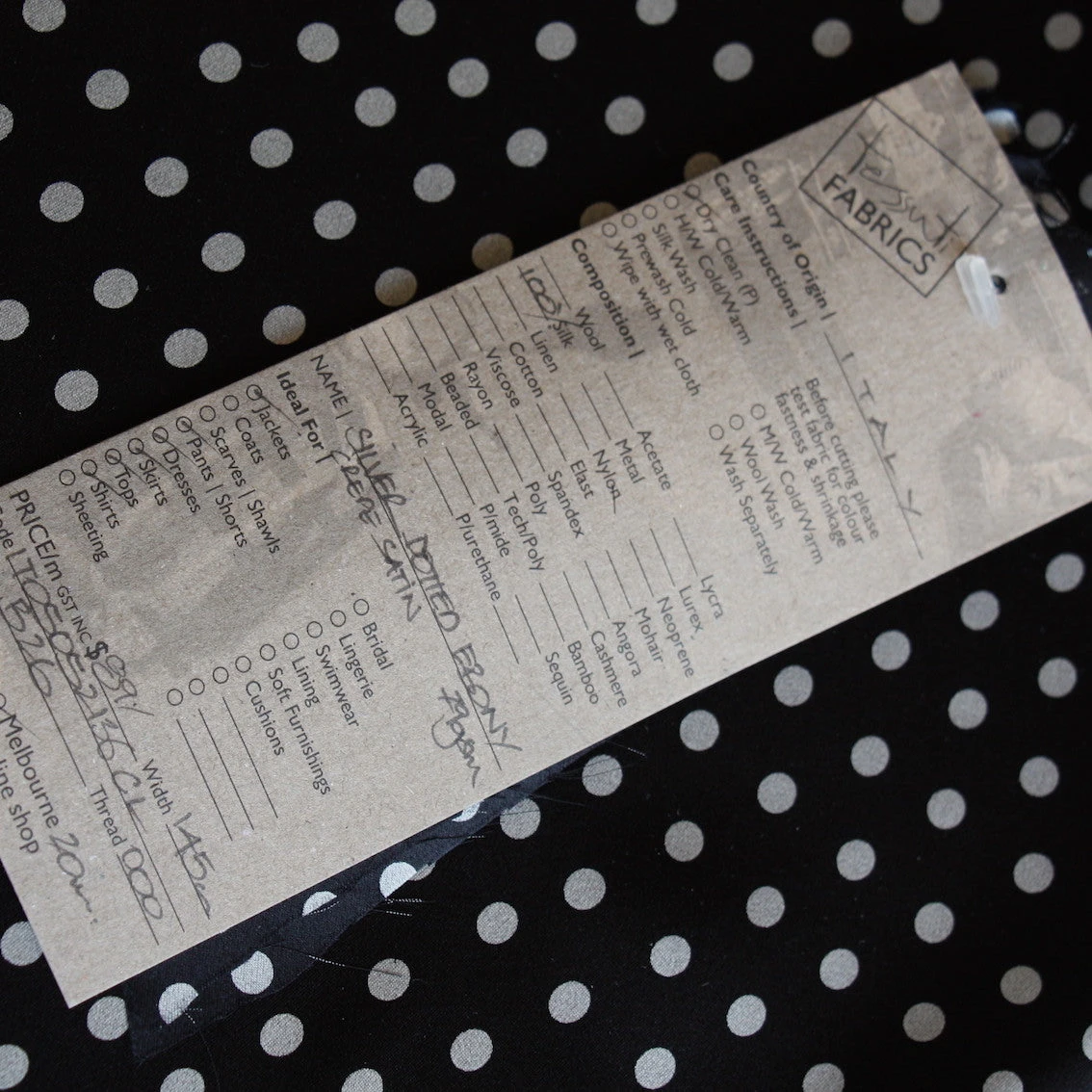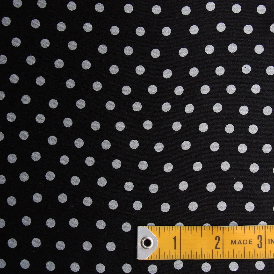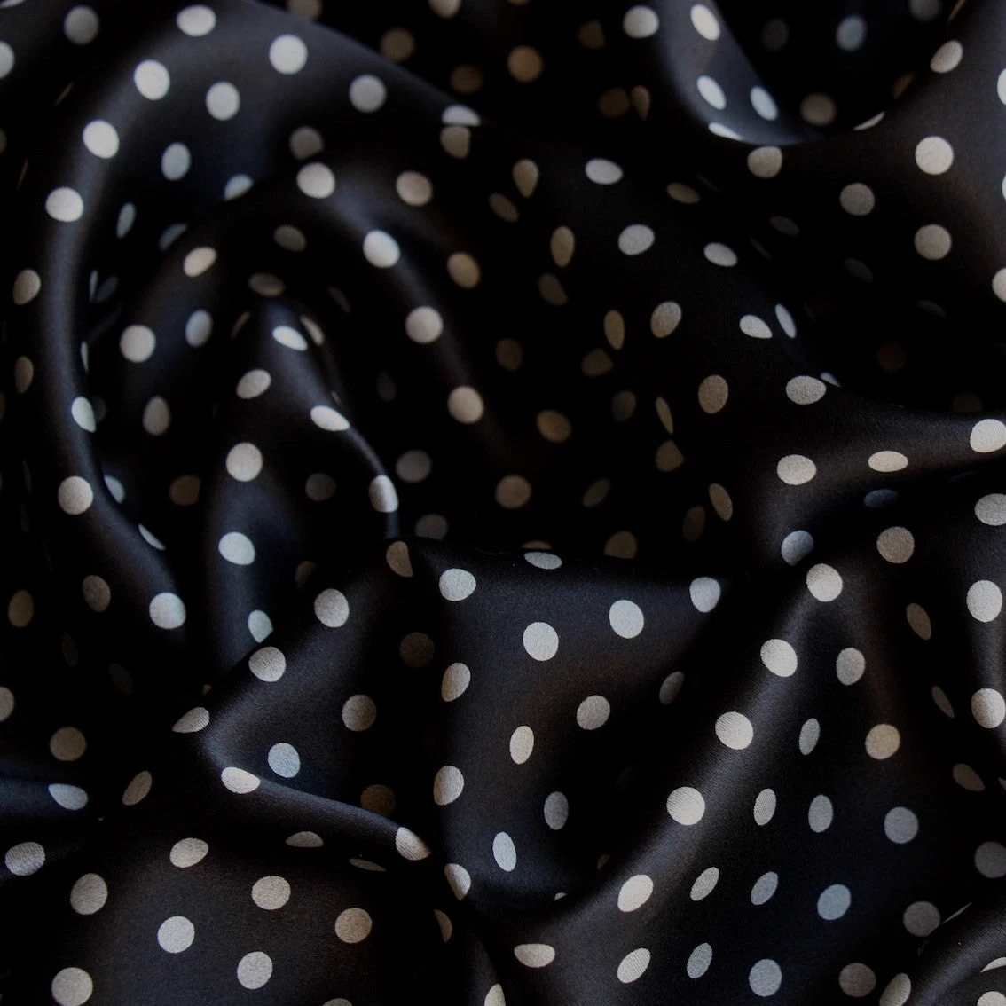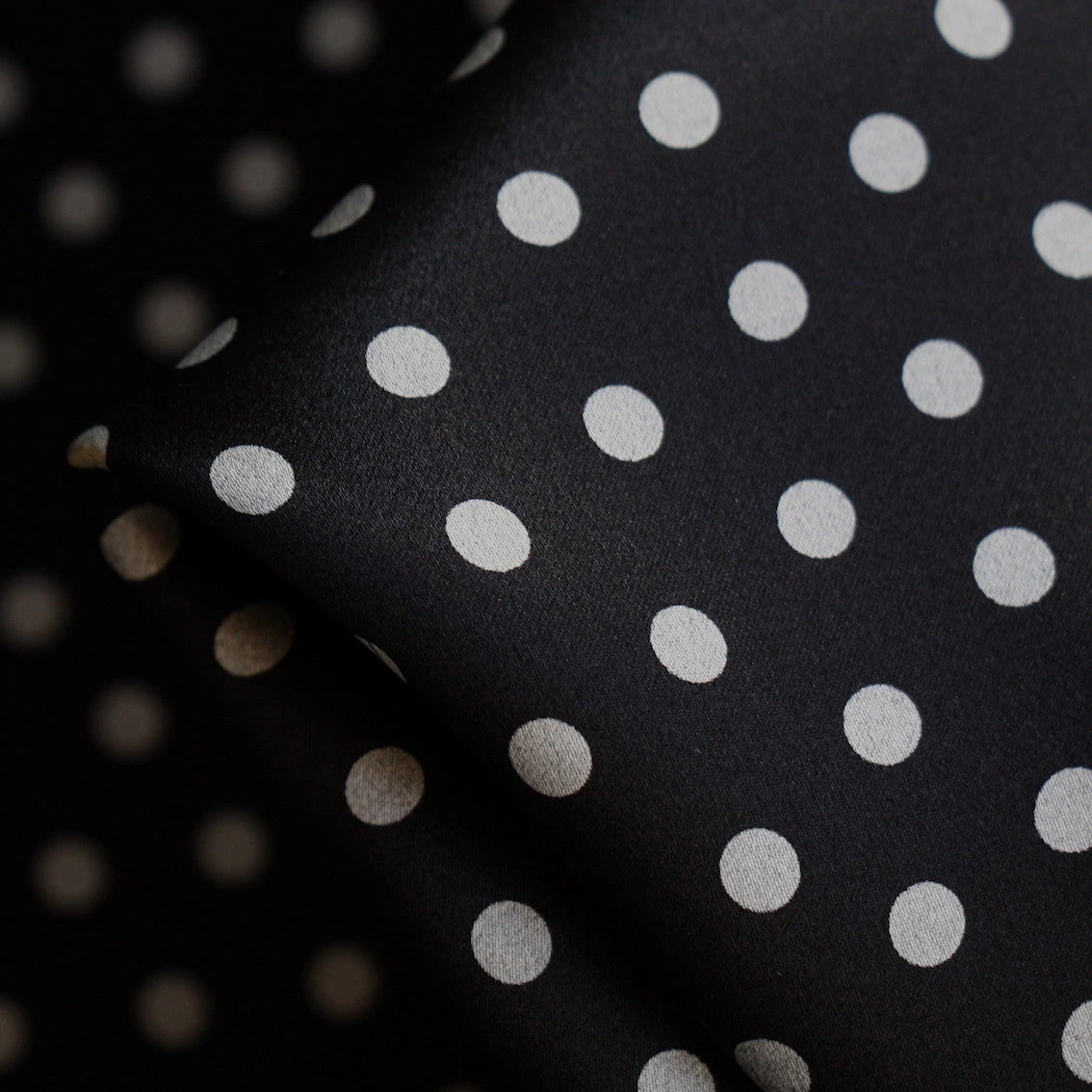 Italian designer silver grey spot on black 100% silk satin