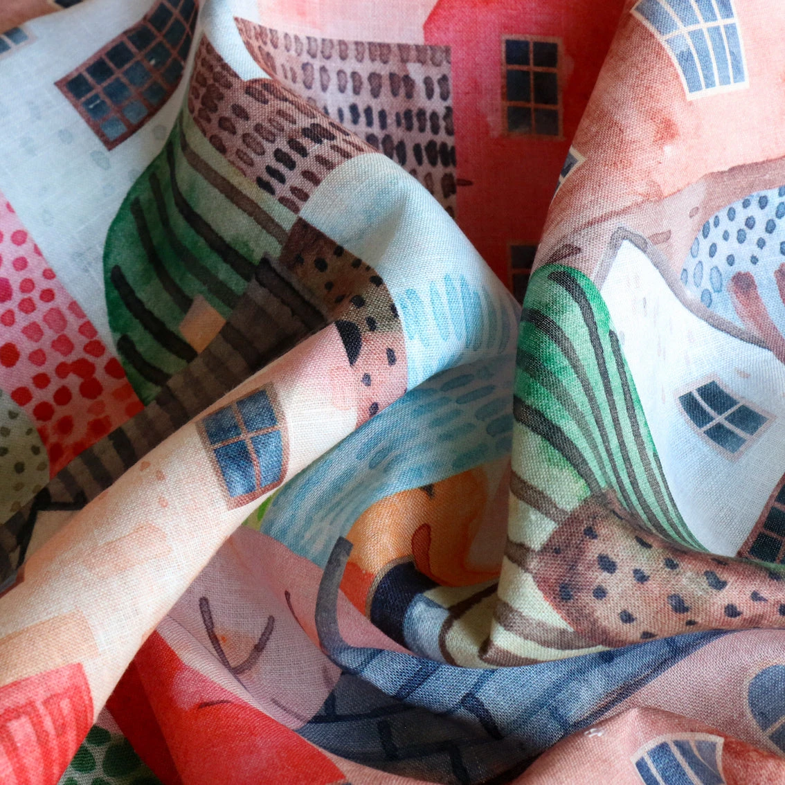 Stunning multi coloured digitally printed 100% linen