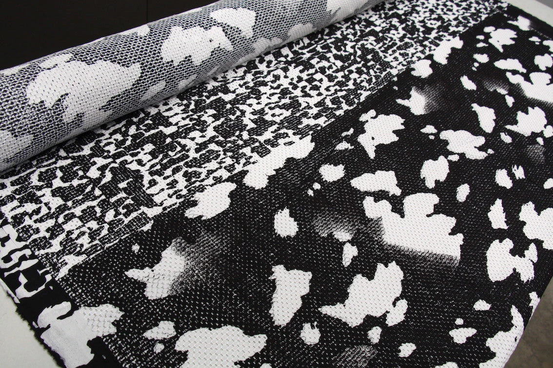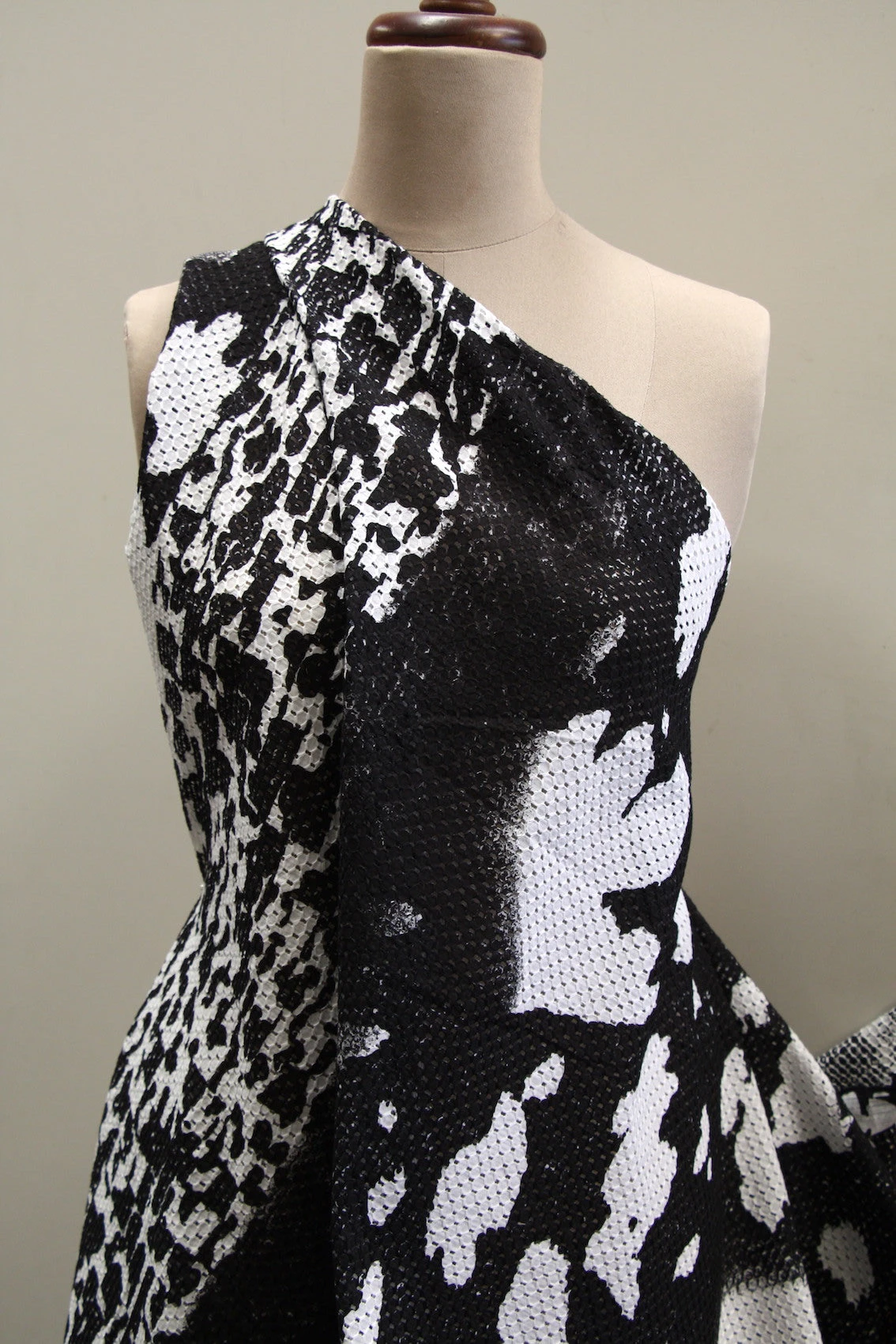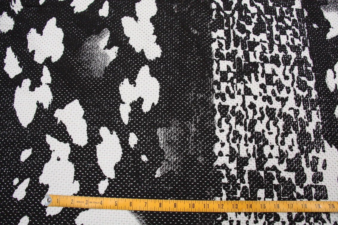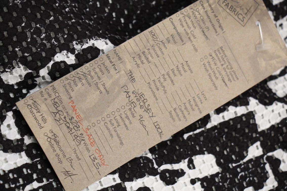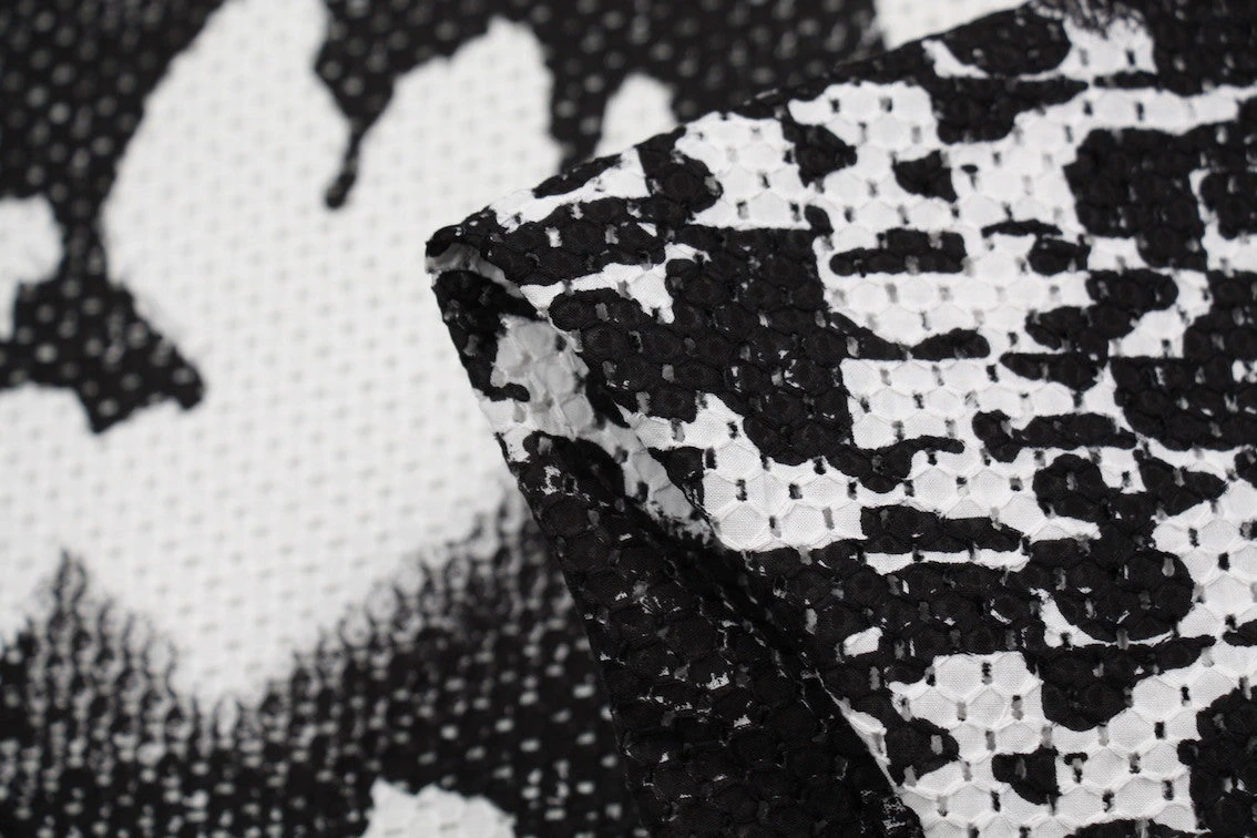 Black/white printed 100% cotton eyelet. Width: 135cmÂ