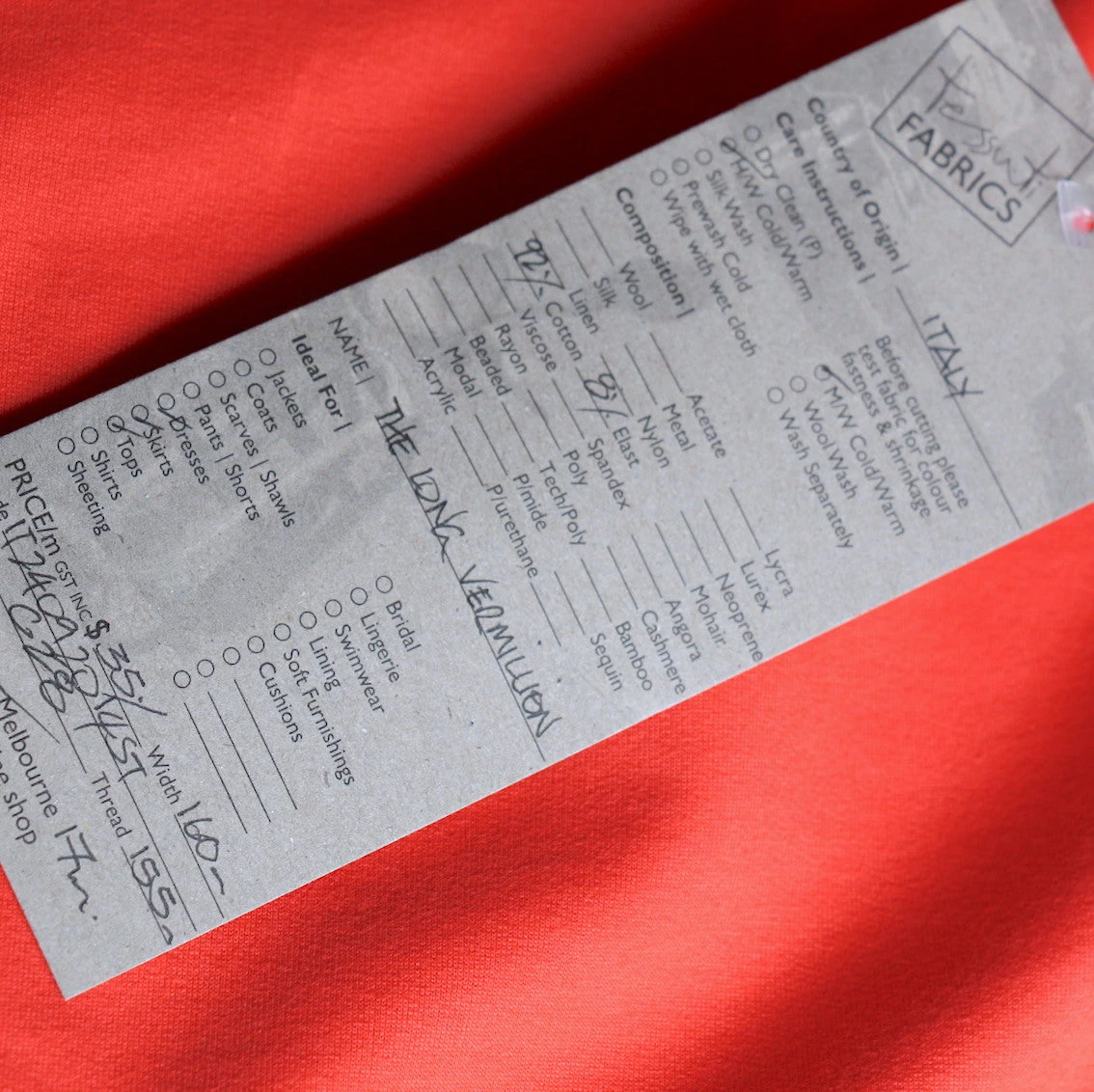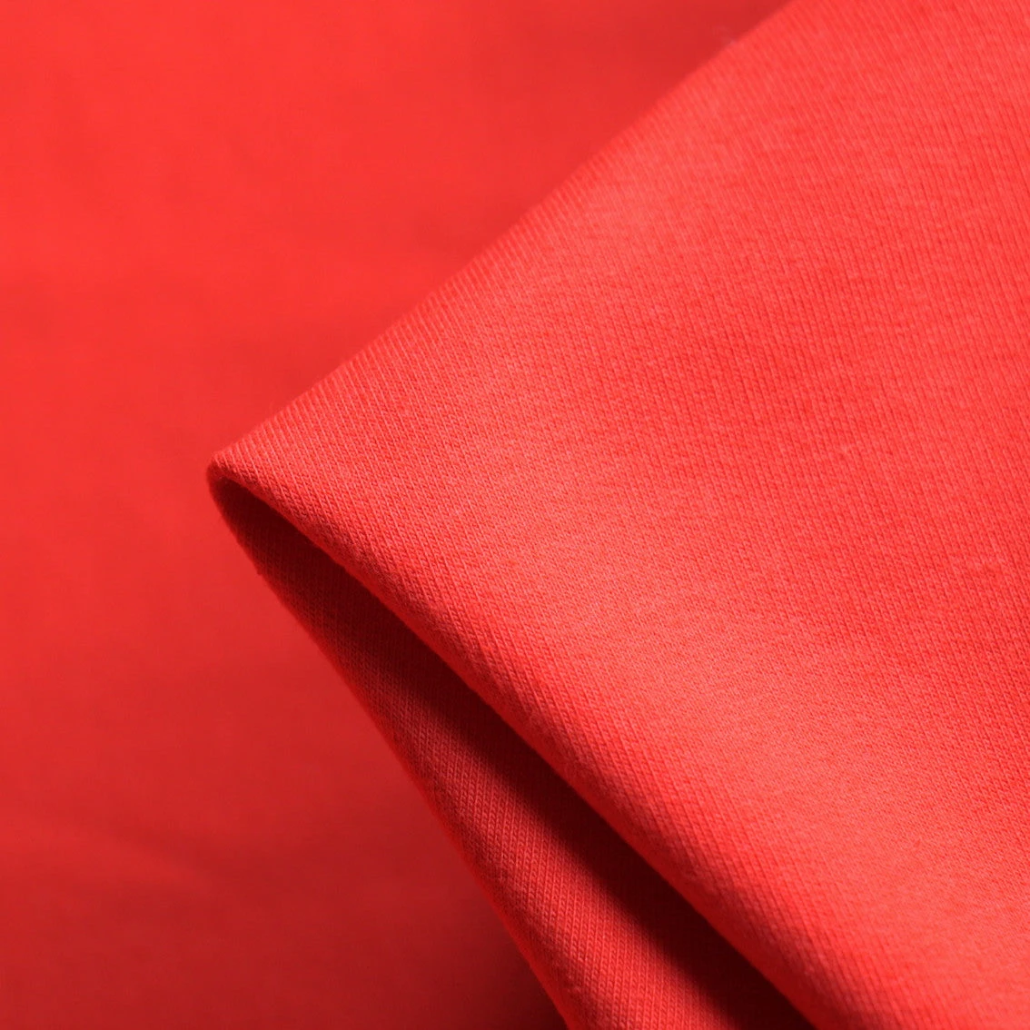Tangerine red coloured 92% cotton 8% elastane French terry loopback knit
