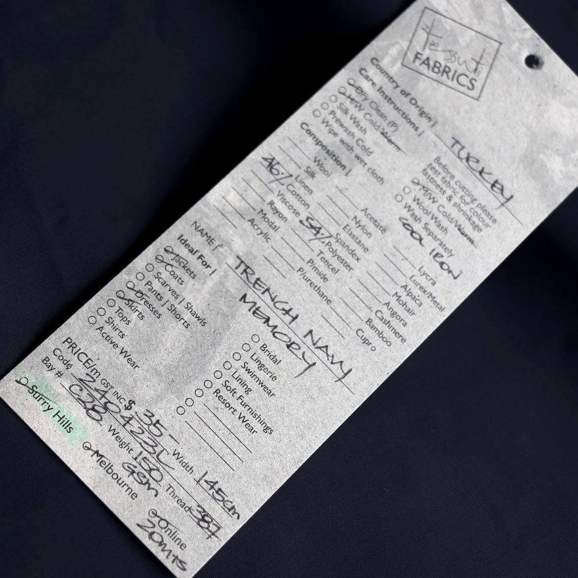 Dark navy 54% polyester 46% cotton memory cloth