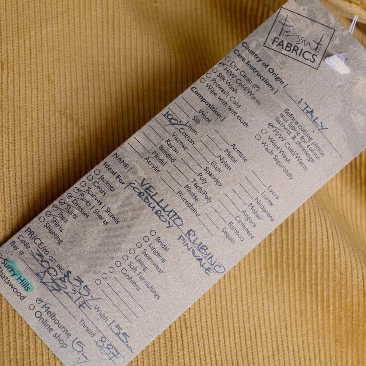 Italian designer camel 100% cotton 11 pinwale corduroy.