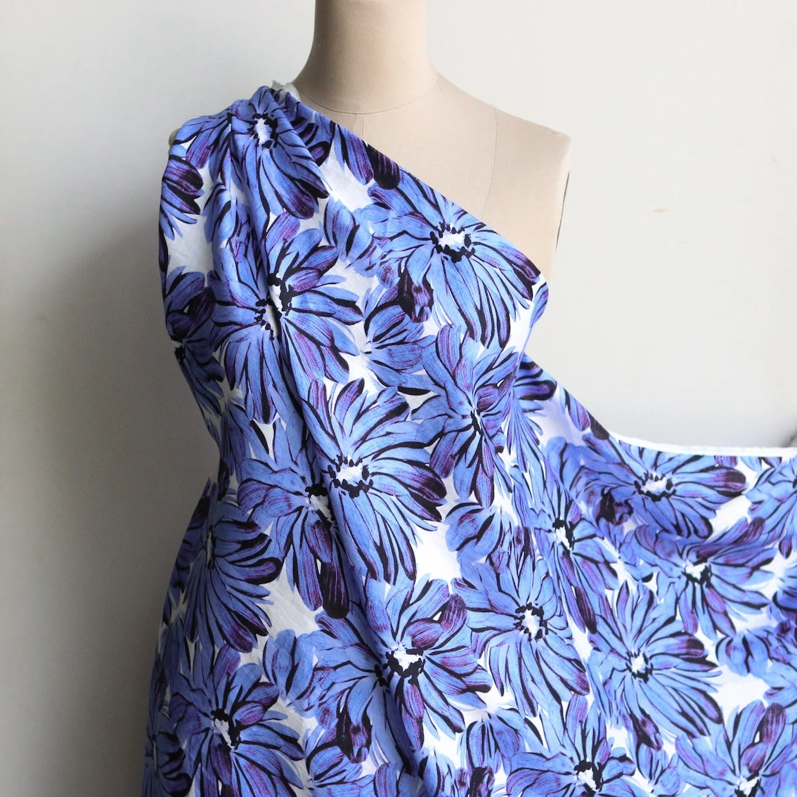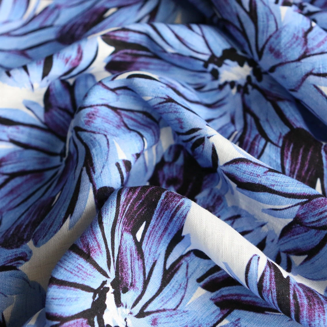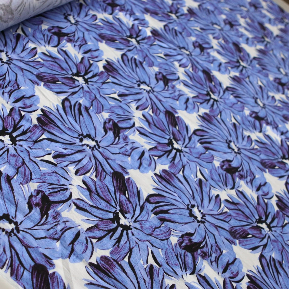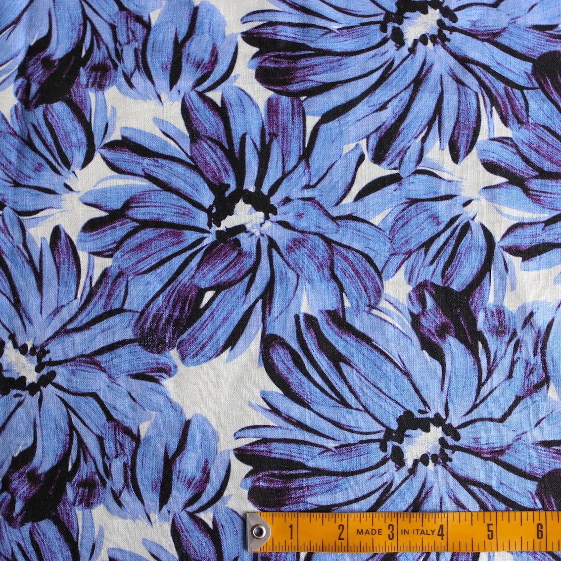 Stunning cornflower blue vintage floral printed washed 100% linen