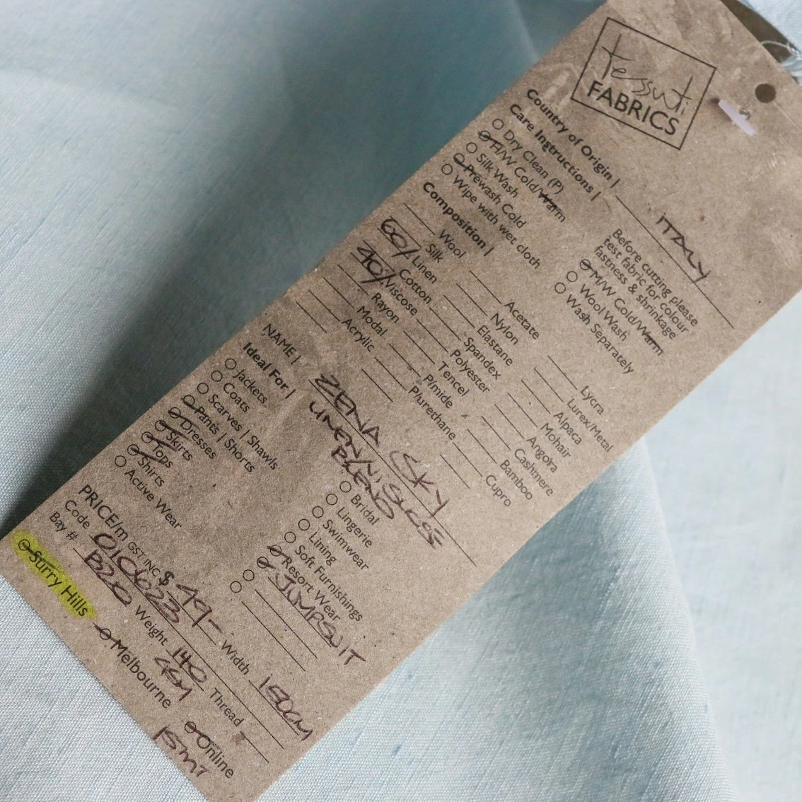 Italian pale blue washed 60% linen 40% viscose